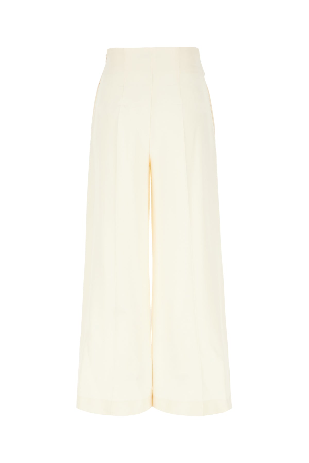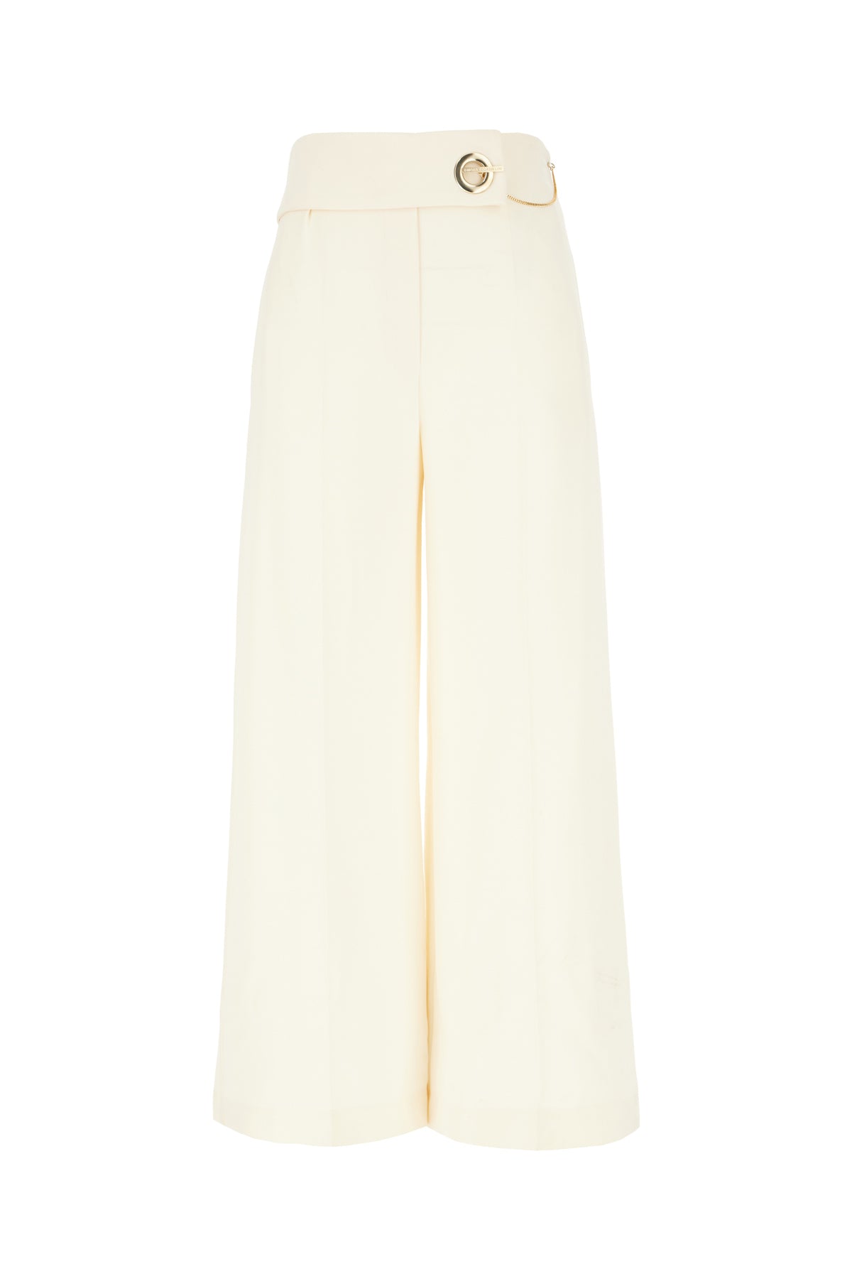 Wide-leg pants realized in stretch polyester enriched by logoed detail at the front.