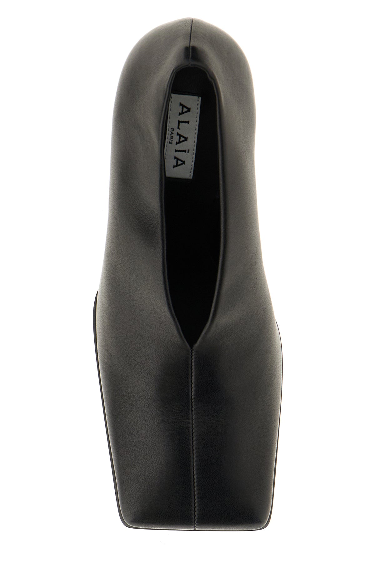 Black leather pumps