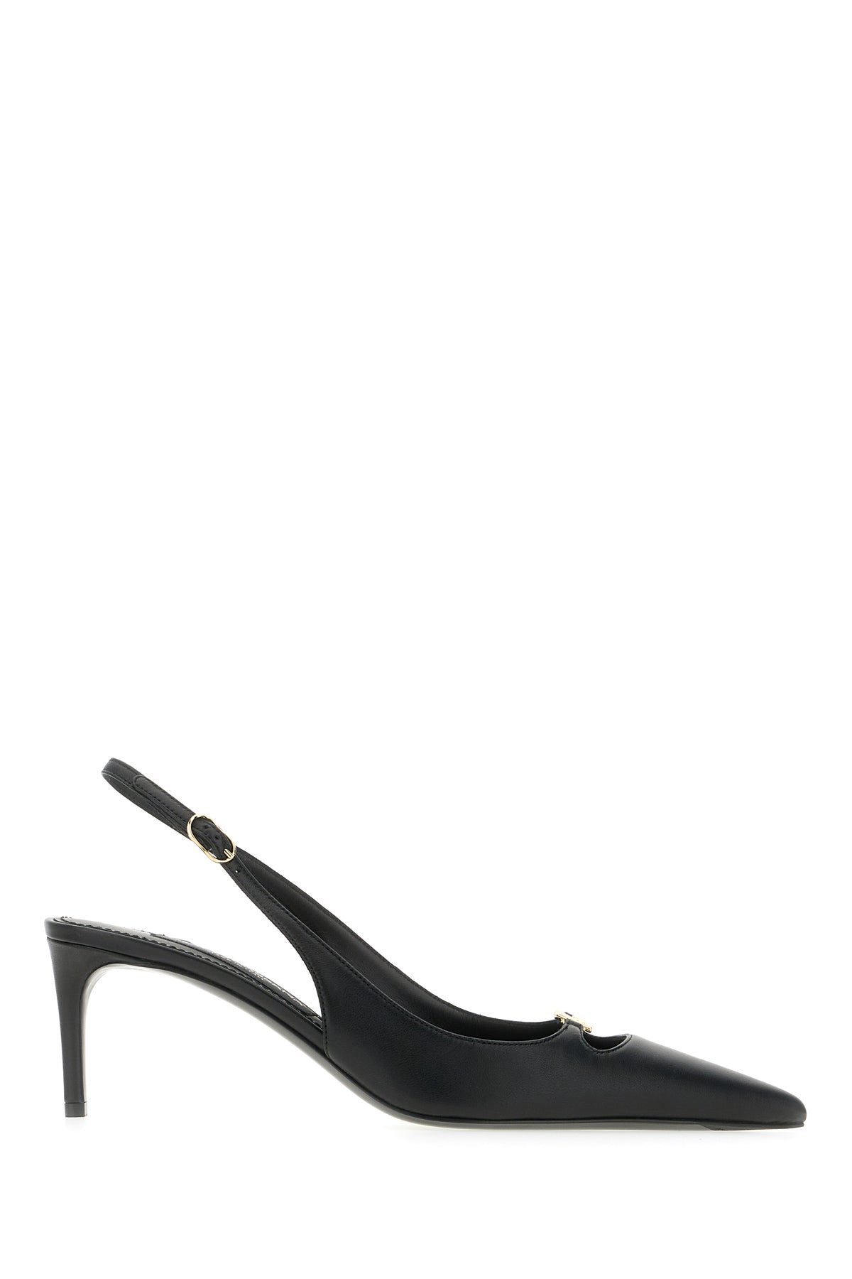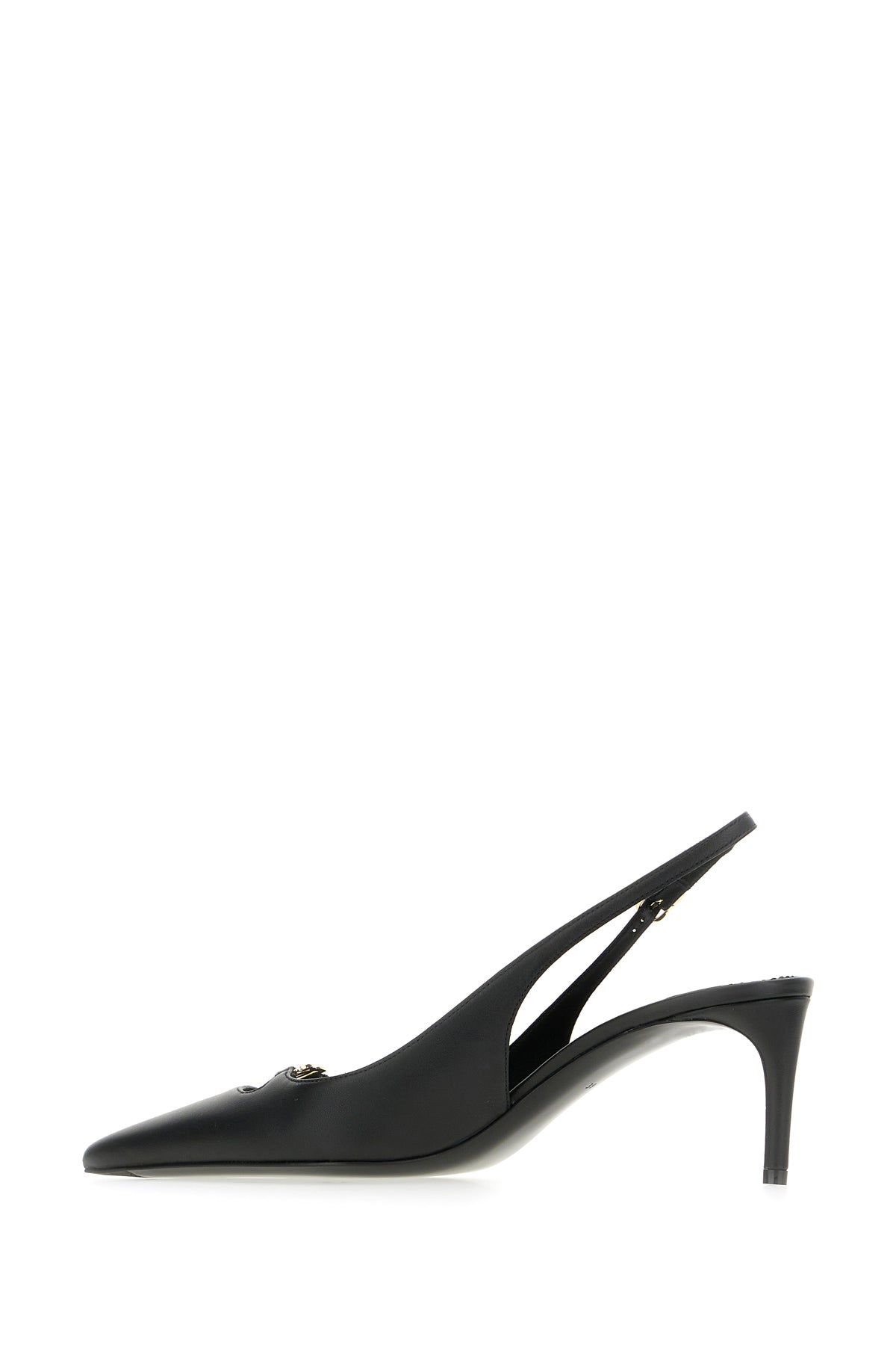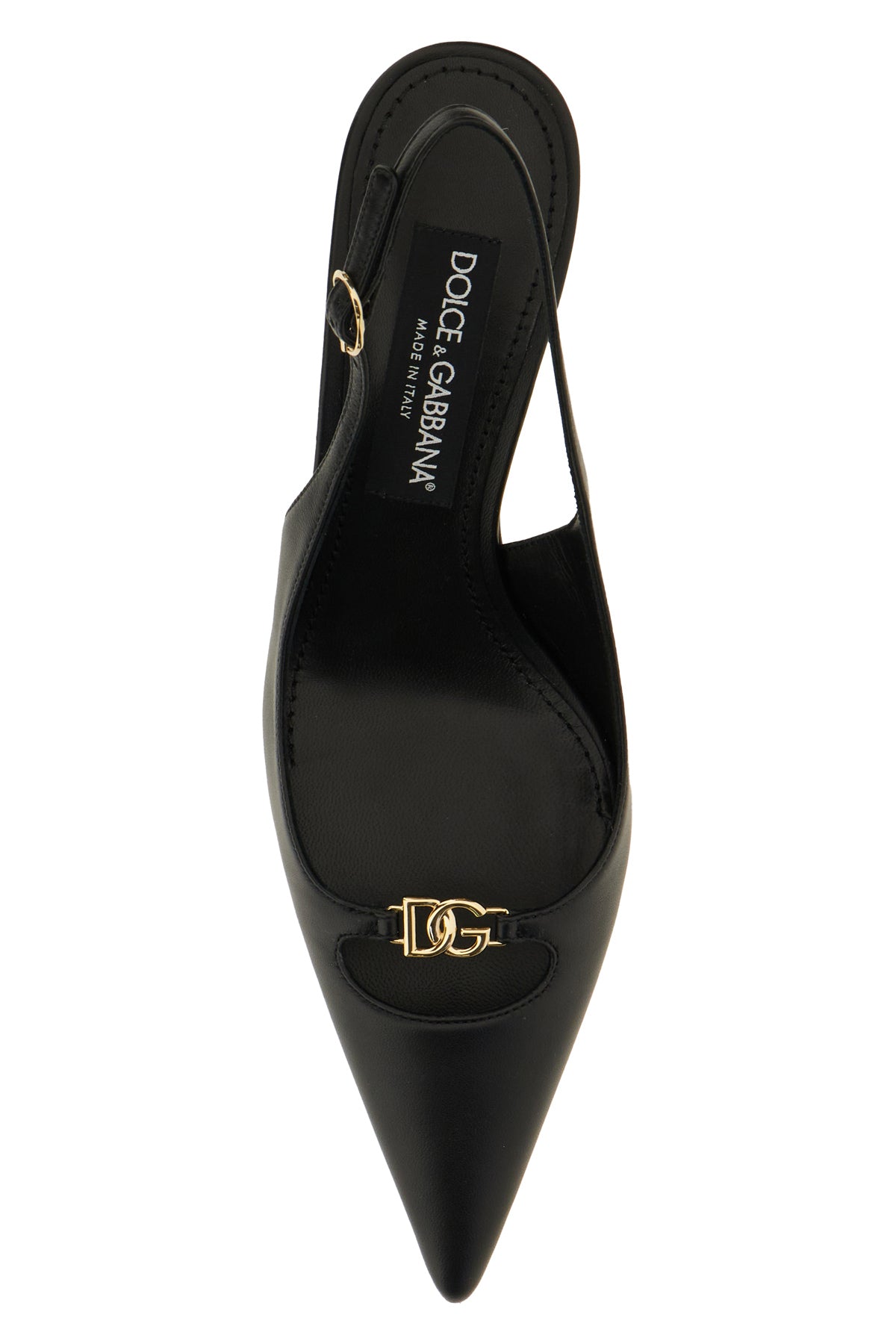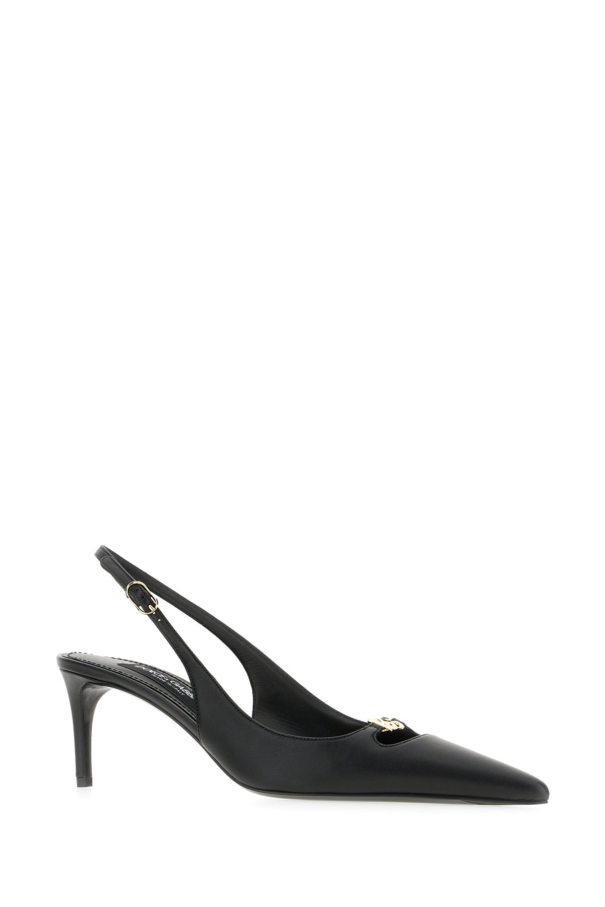 Slingback realized in calf leather enriched by metal DG detail at the back.