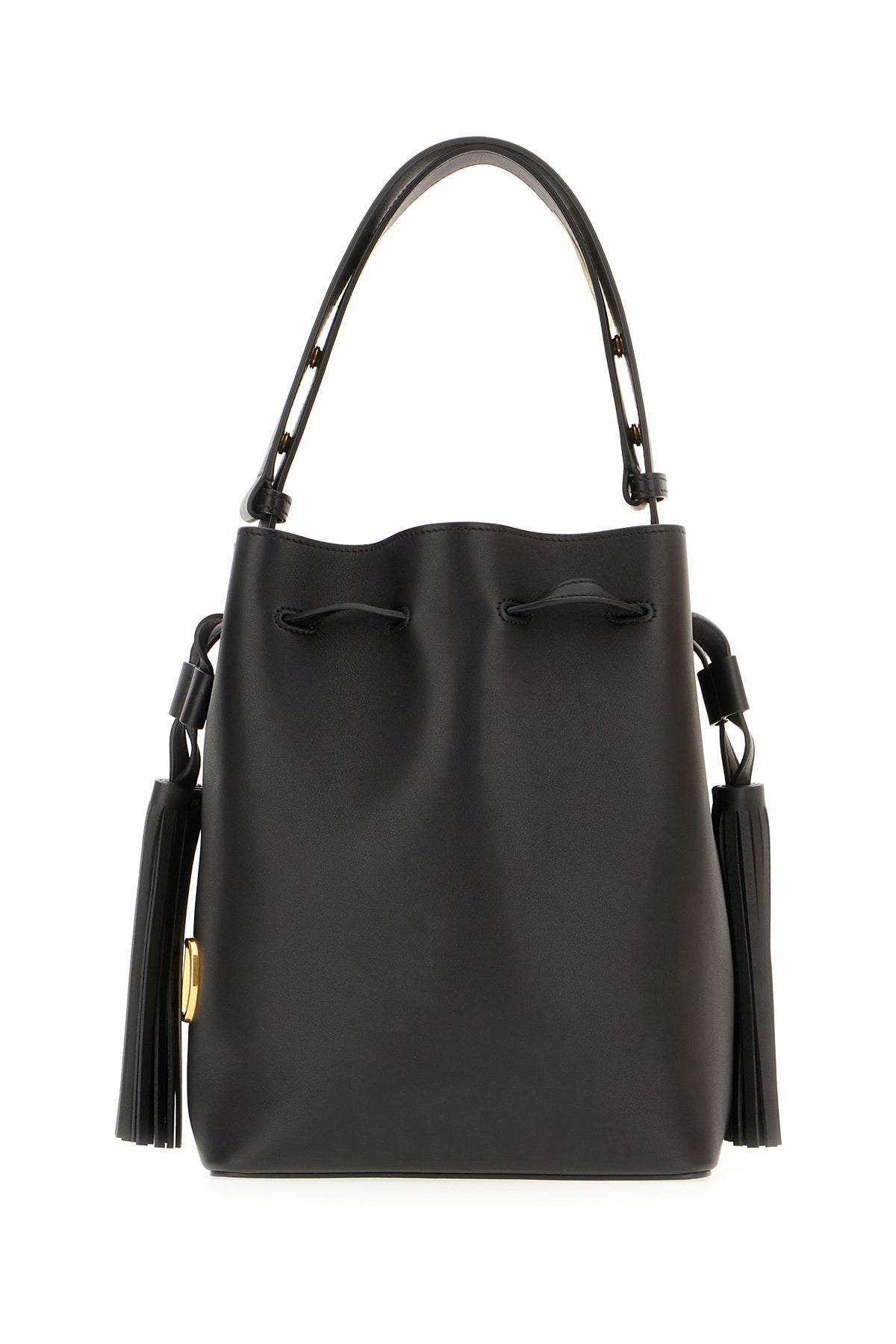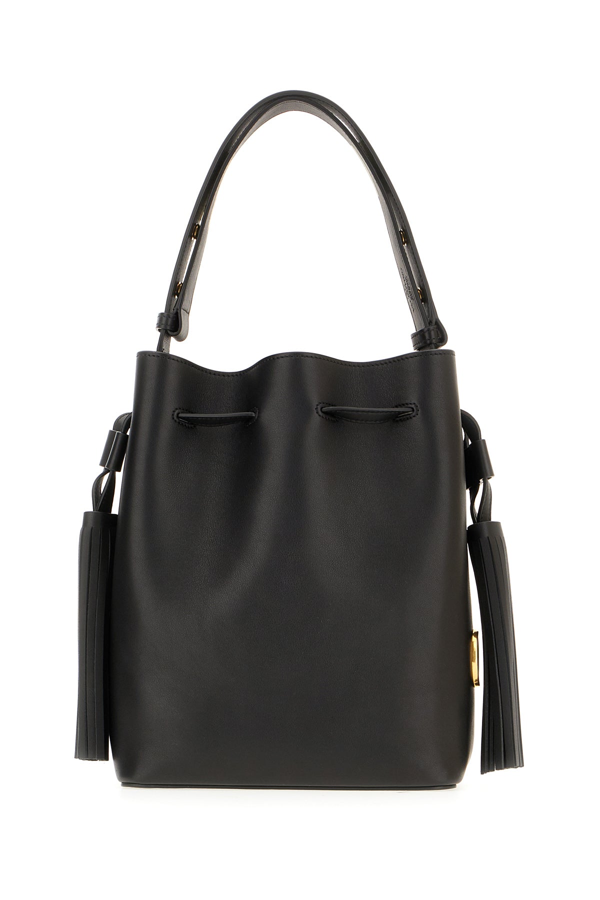 Black leather bucket bag