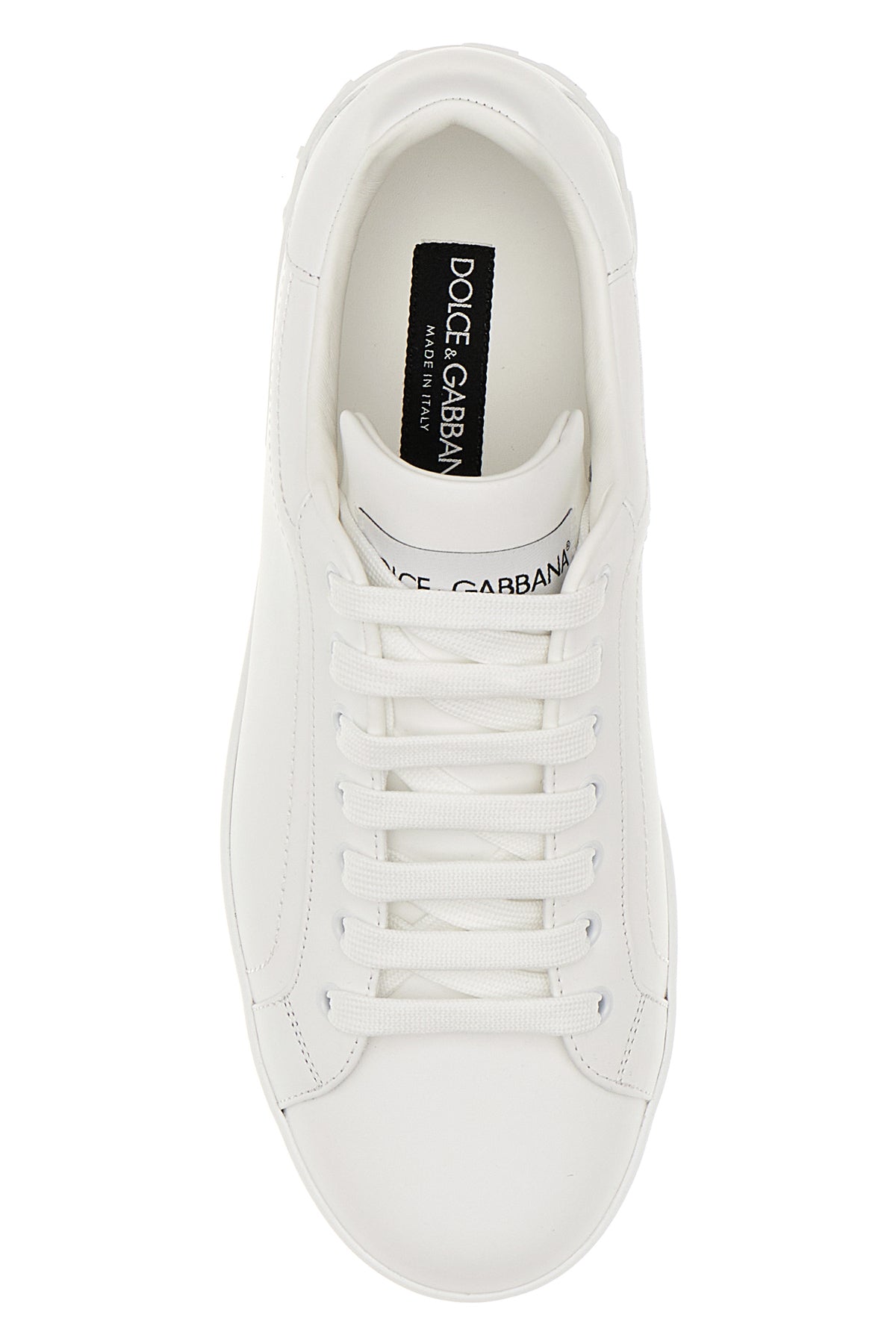 Sneakers realized in calf leather characterized by contrasting logoed label on the tongue and tonal printed logo in reliefs at the back.