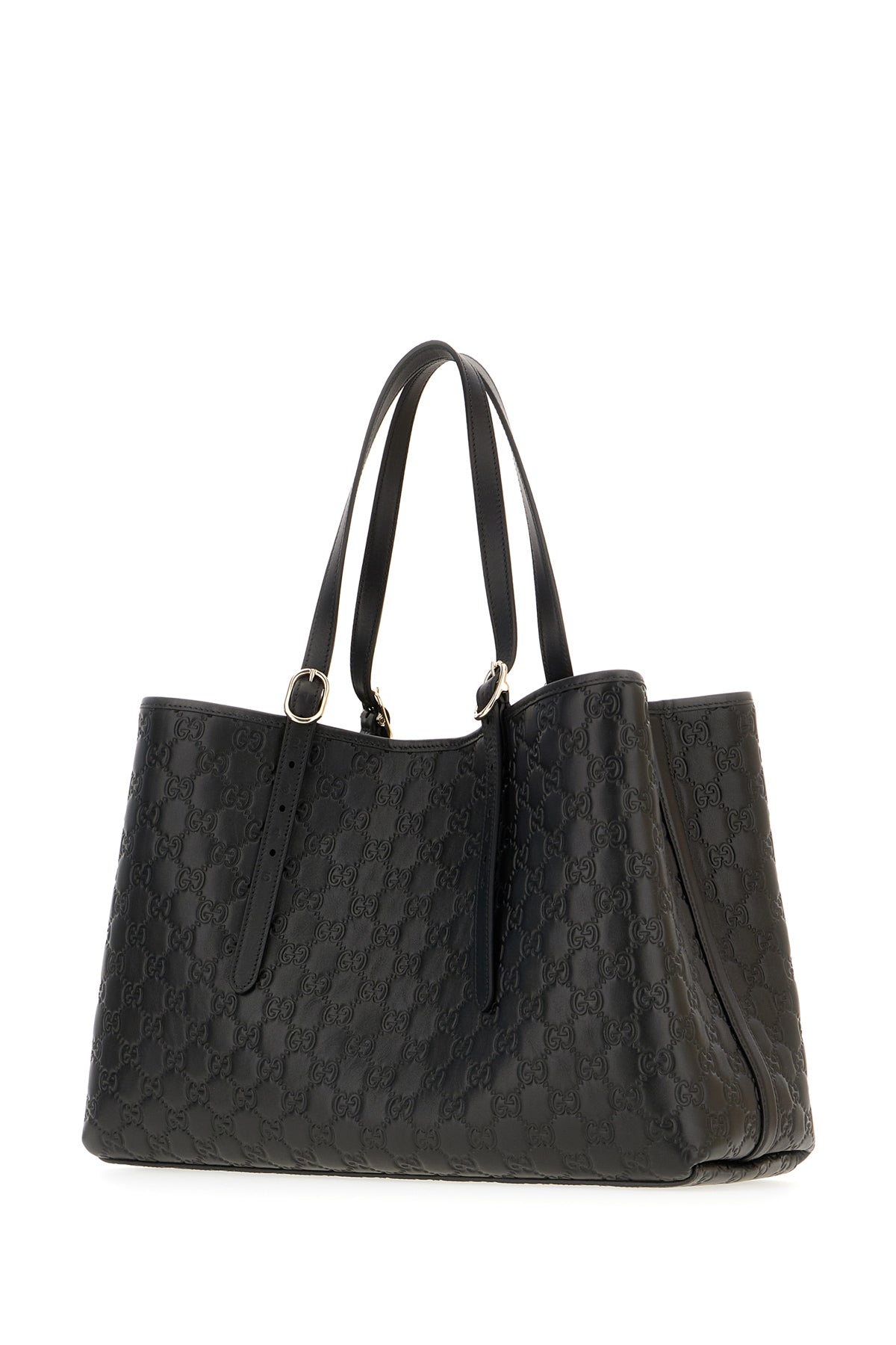 Black leather shopping bag