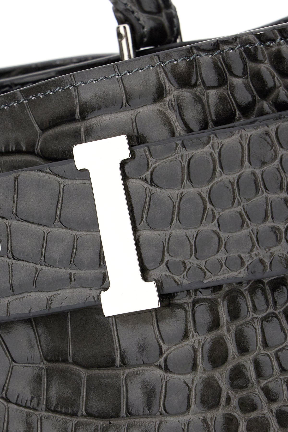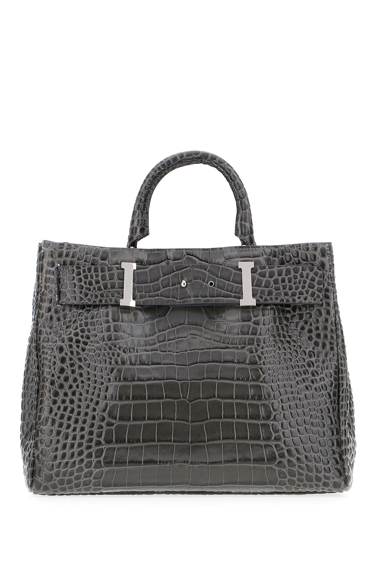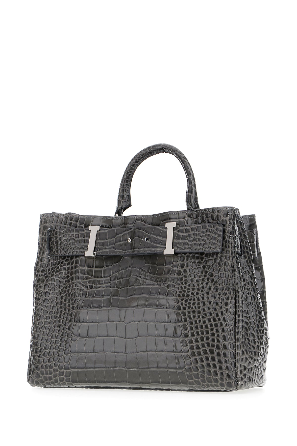 Grey leather handbag
