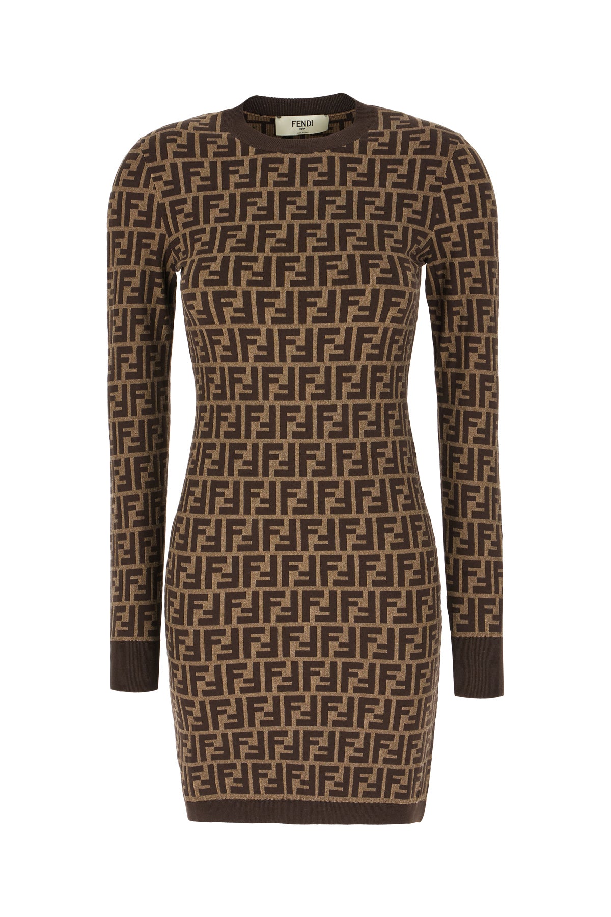 Fitted dress realized in stretch cotton blend characterized by FF motif embroidery on the entire surface.