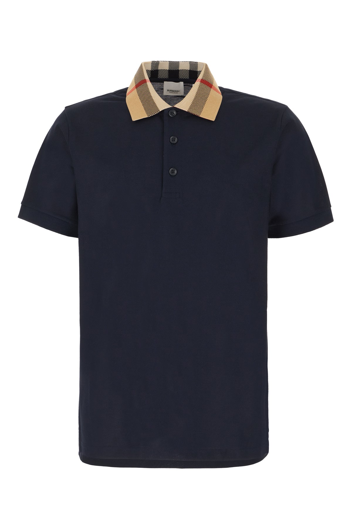 Polo shirt realized in pure cotton piquet characterized by contrasting Burberry Check embroidery on the collar.