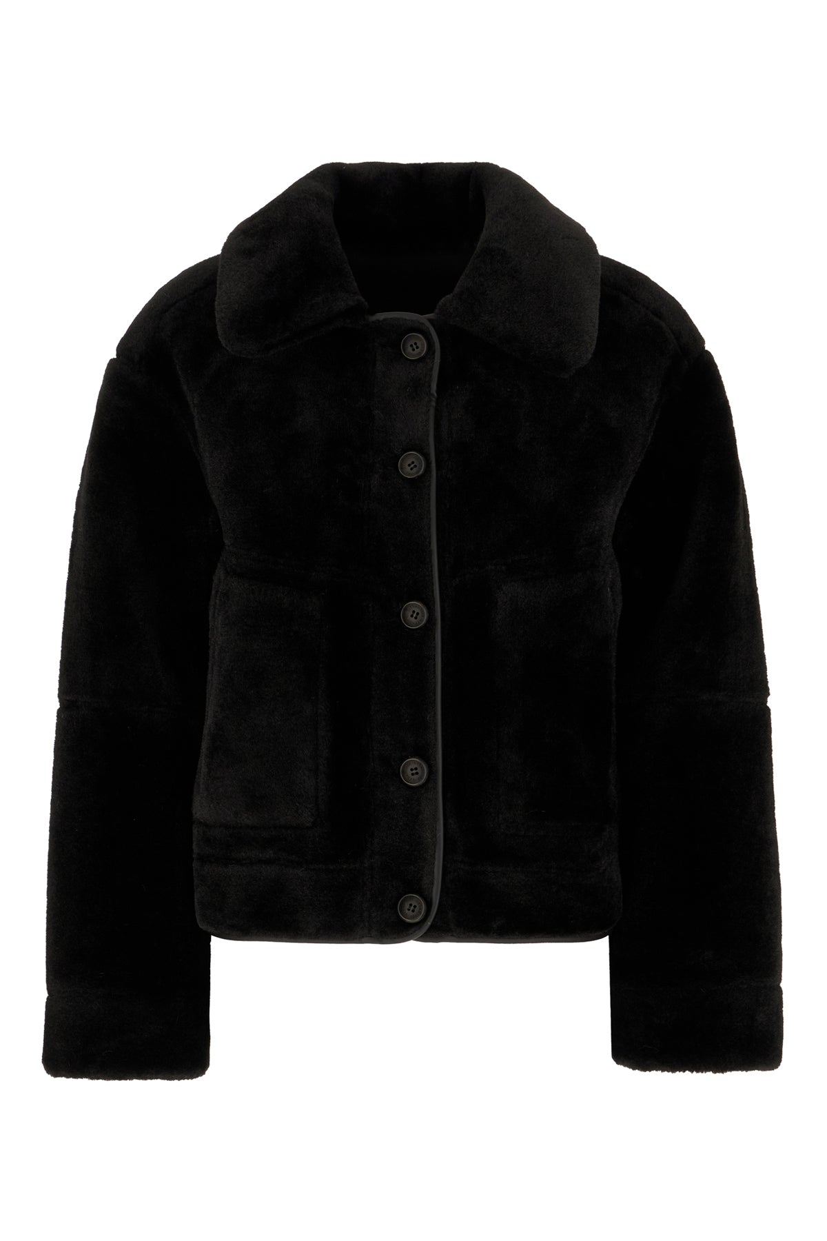 Black reversible eco fur coat