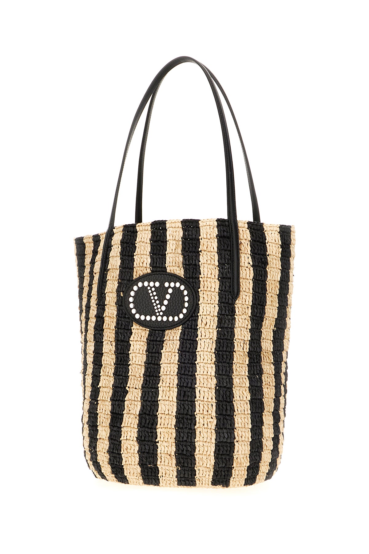Two-tone raffia handbag