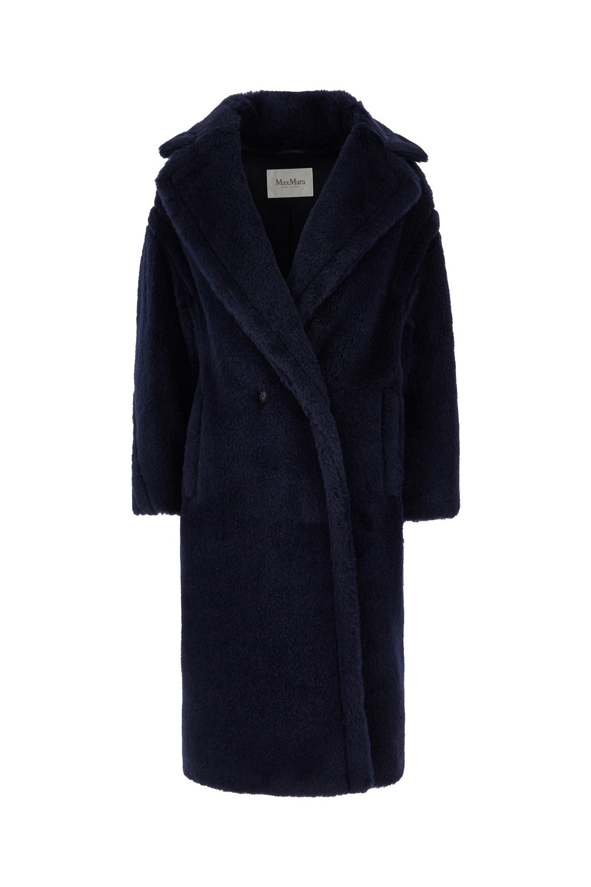 Oversize coat realized in alpaca blend characterized by lapels.