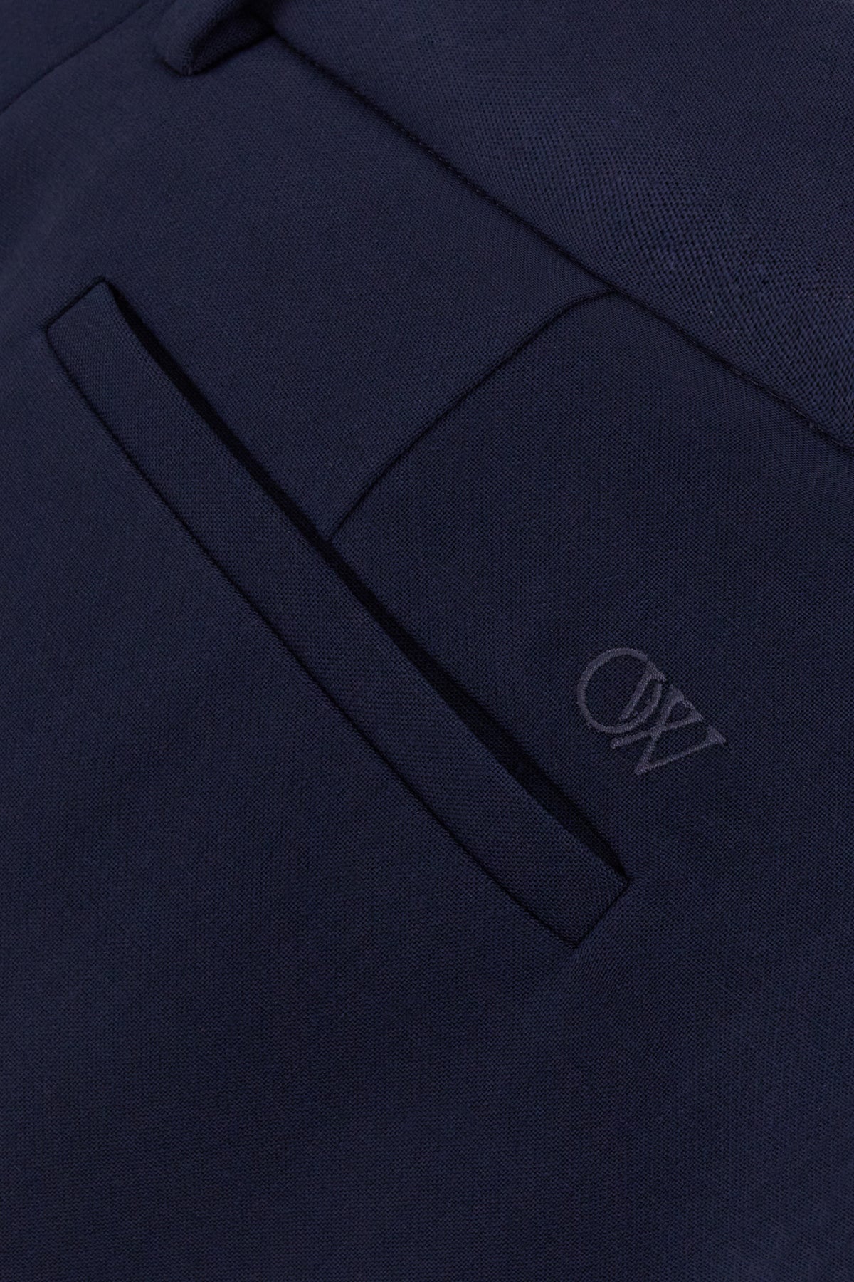 Pant realized in stretch wool blend characterized by tonal OW embroidery at the back.