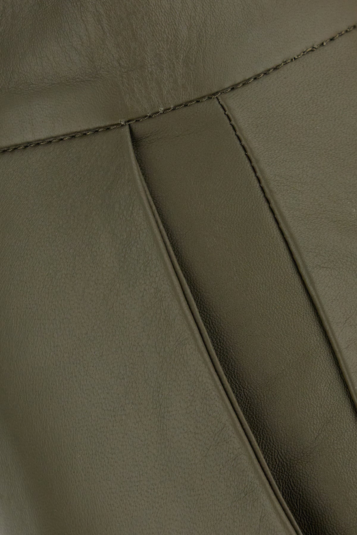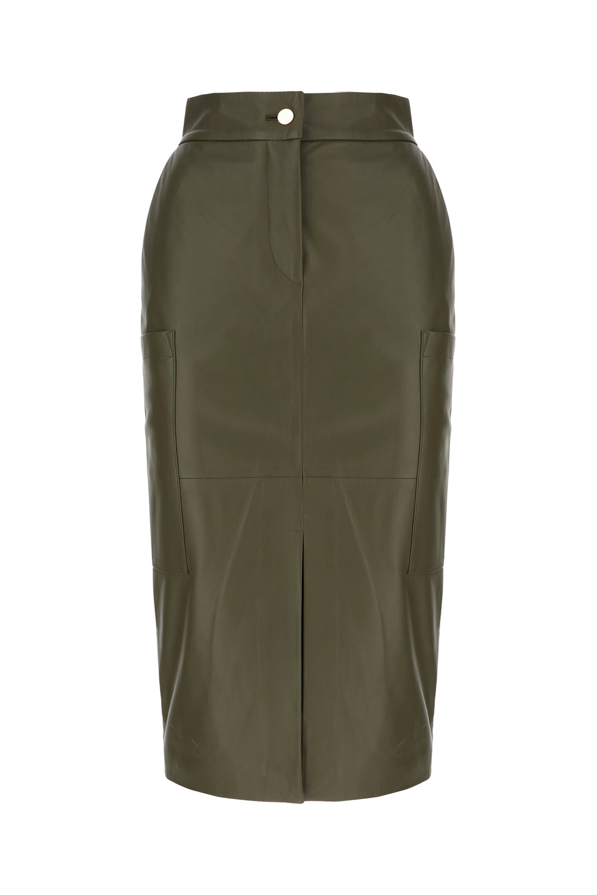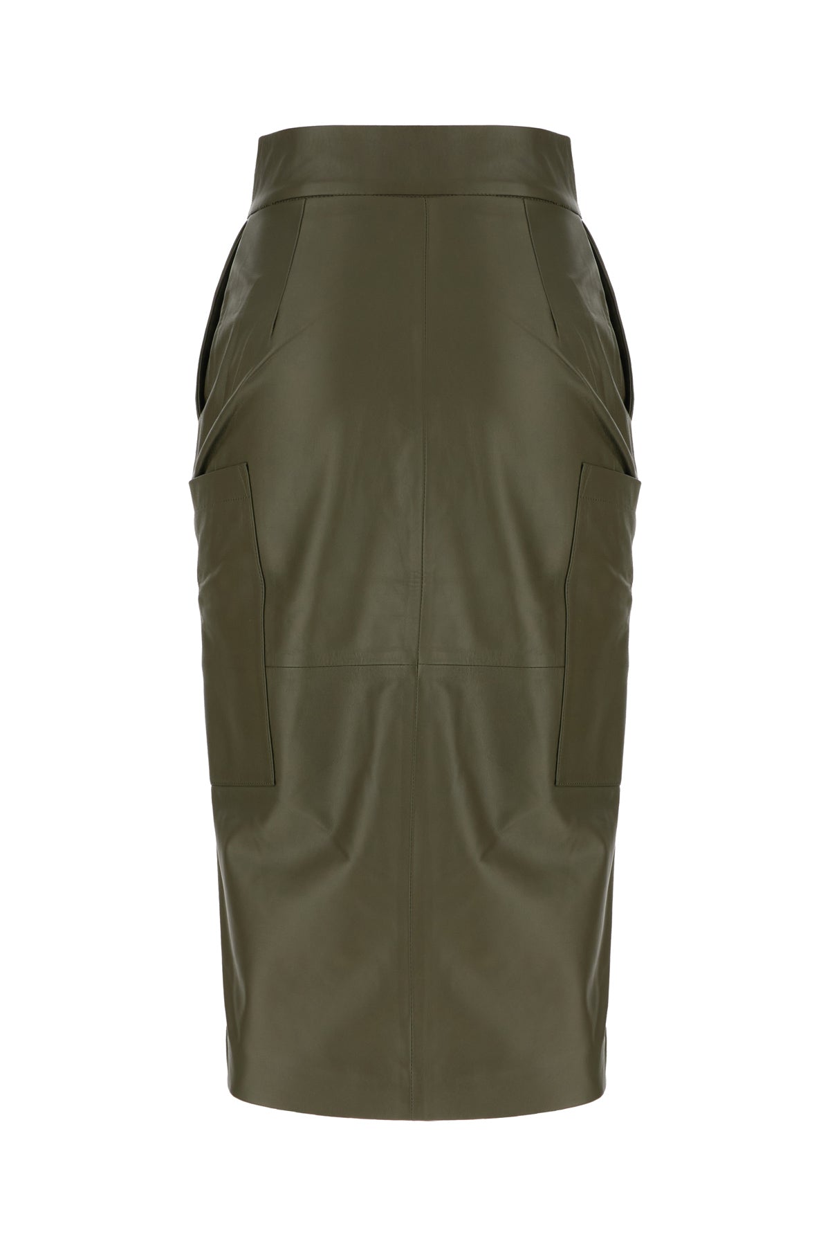 Olive green leather midi skirt