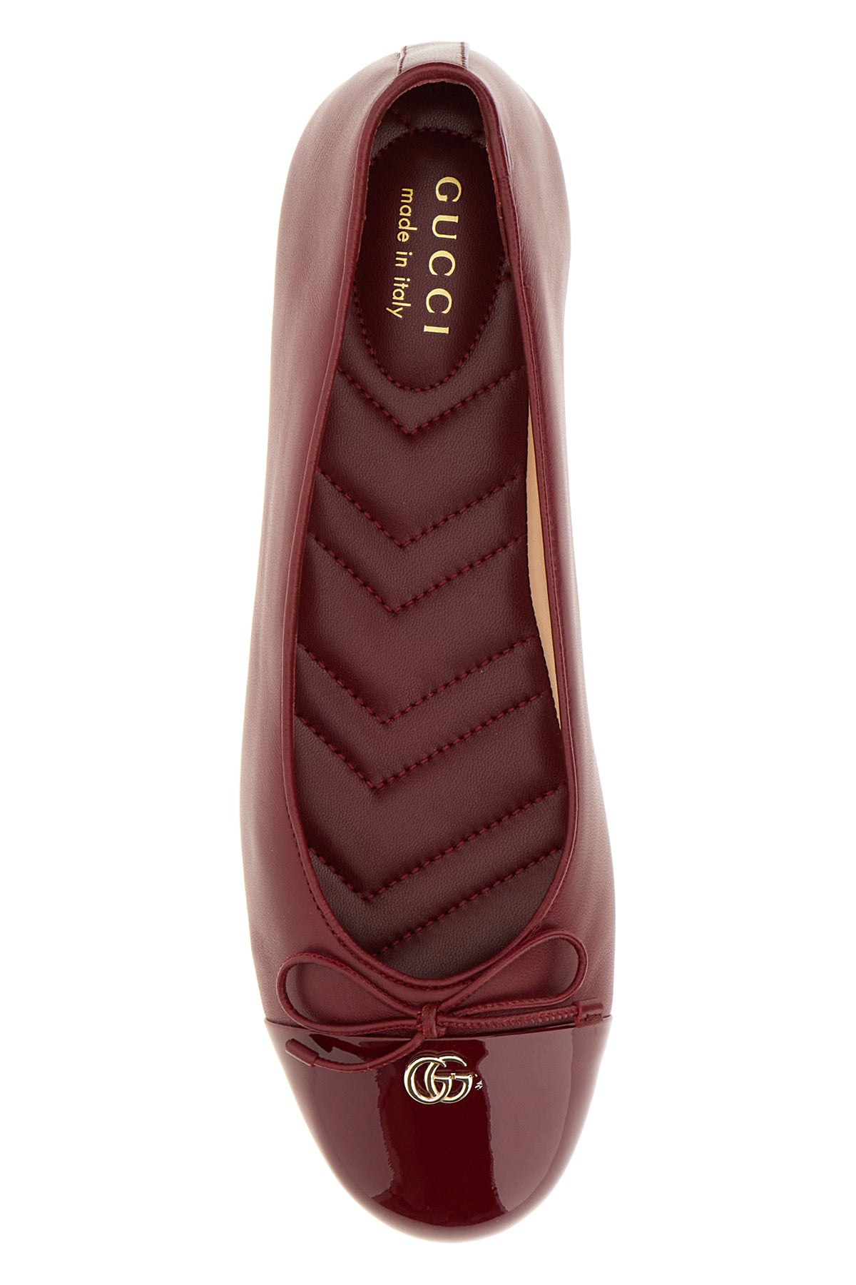 Ballerinas realized in smooth leather enriched by GG metal detail and decorative bow on the instep.