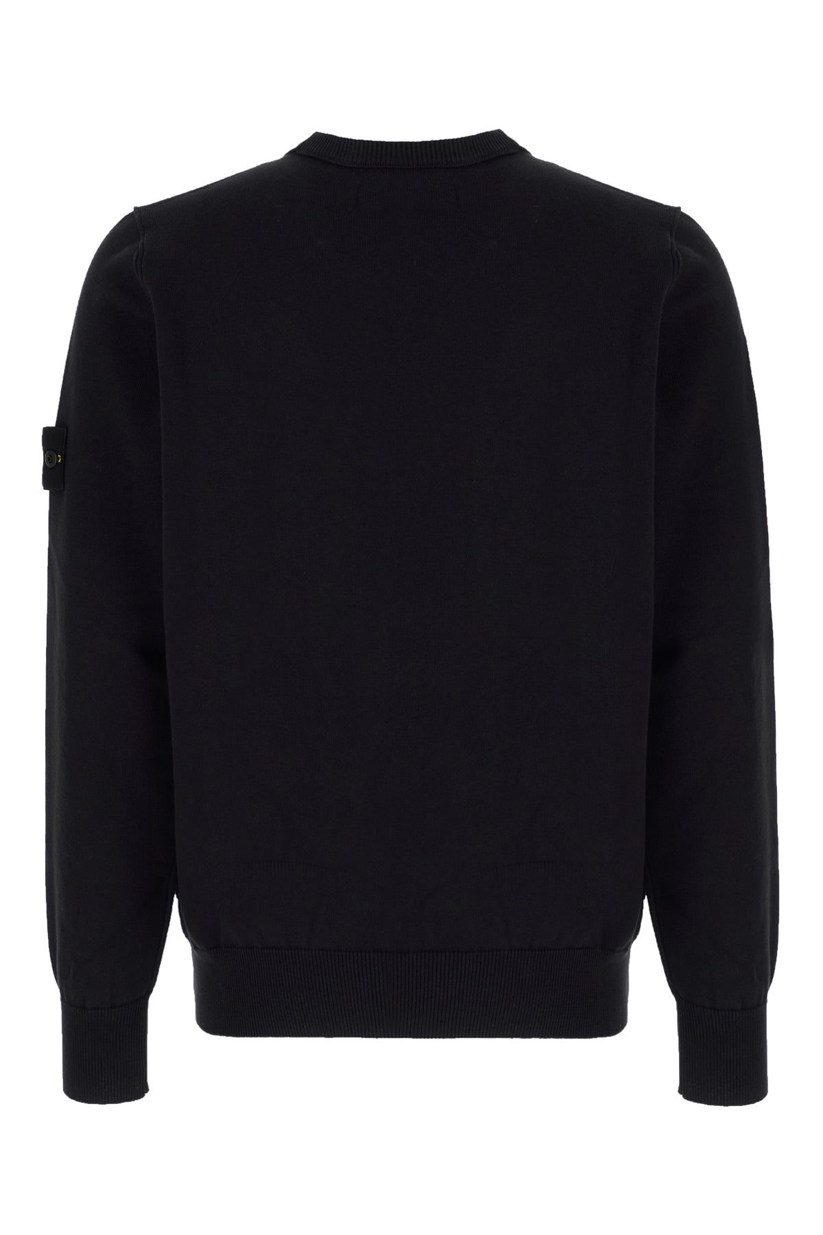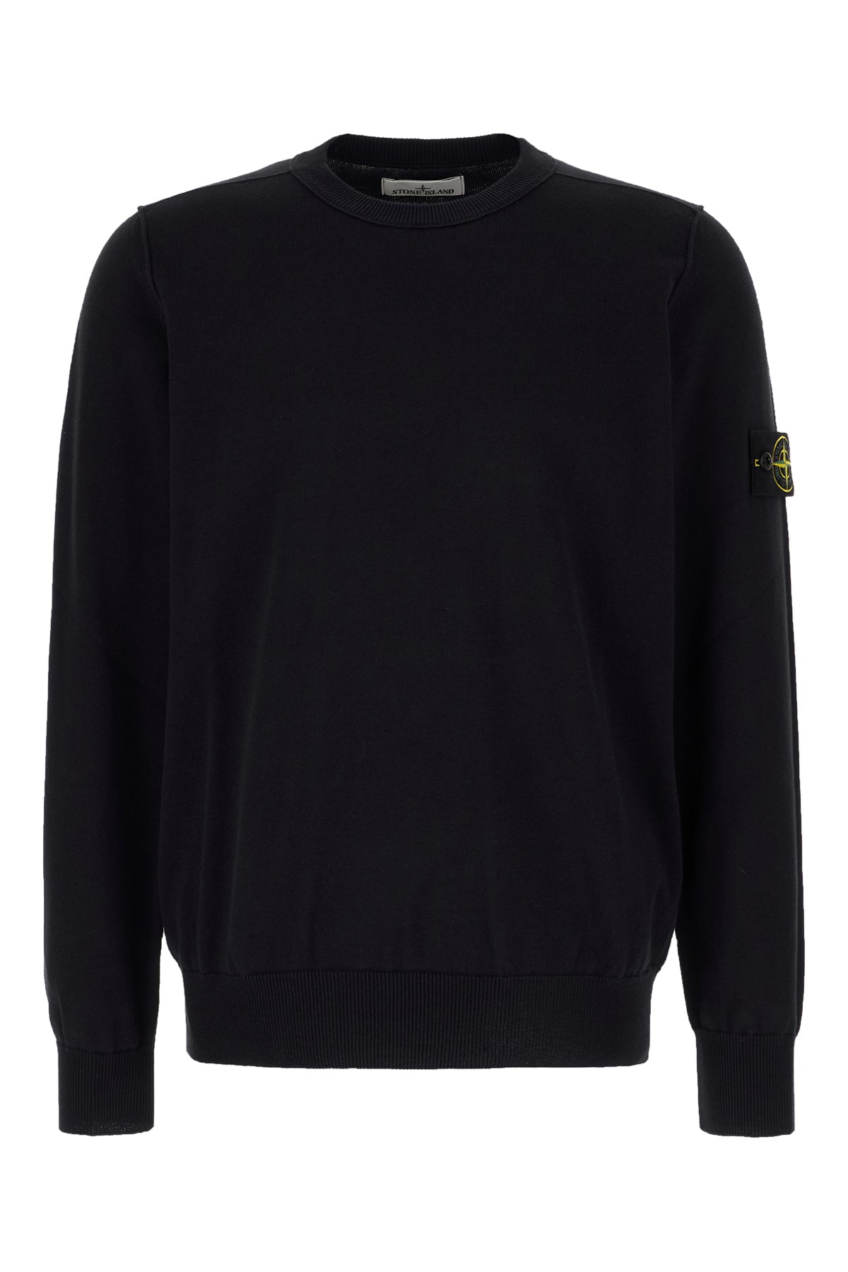 Light-weight sweater realized in pure cotton enriched by detachable contrasting fabric logoed label on the sleeve