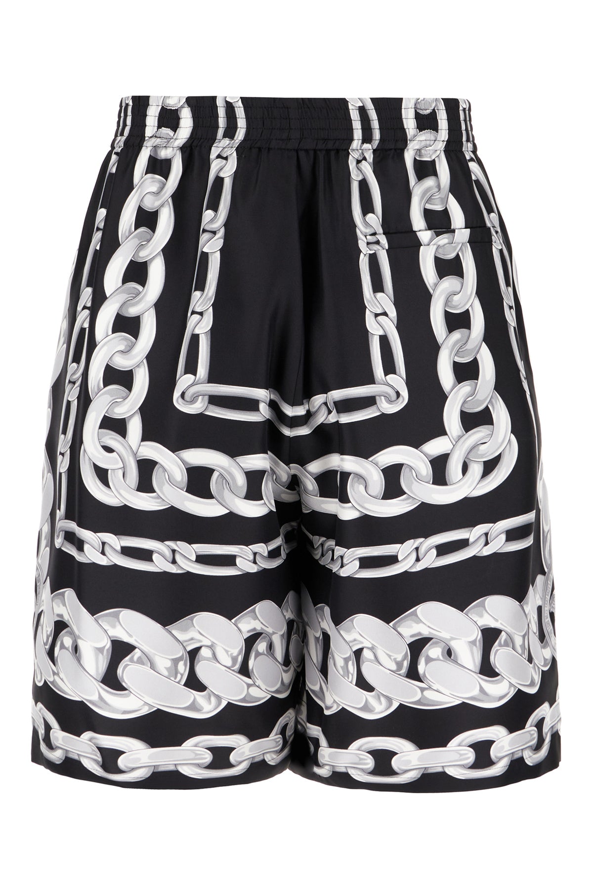 Bermuda shorts realized in pure silk characterized by Medusa Chains print on the entire surface.