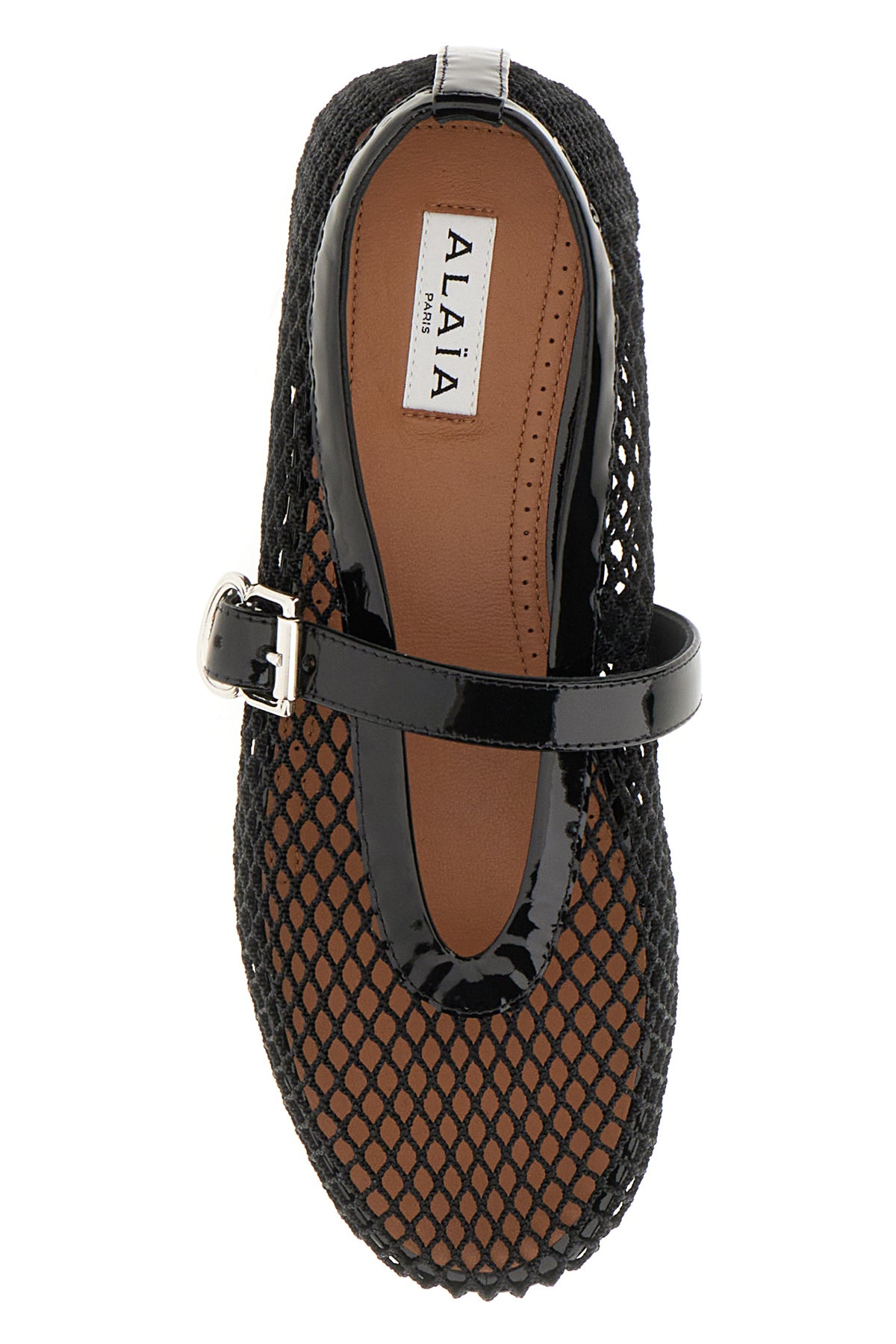 Ballerine realizzate in rete di nylon caratterizzate da chiusura mediante cinturino regolabile.