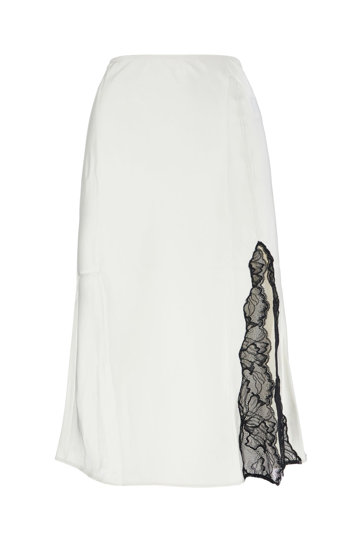 Gonna midi realizzata in raso arricchita da inserto in pizzo sul fondo.