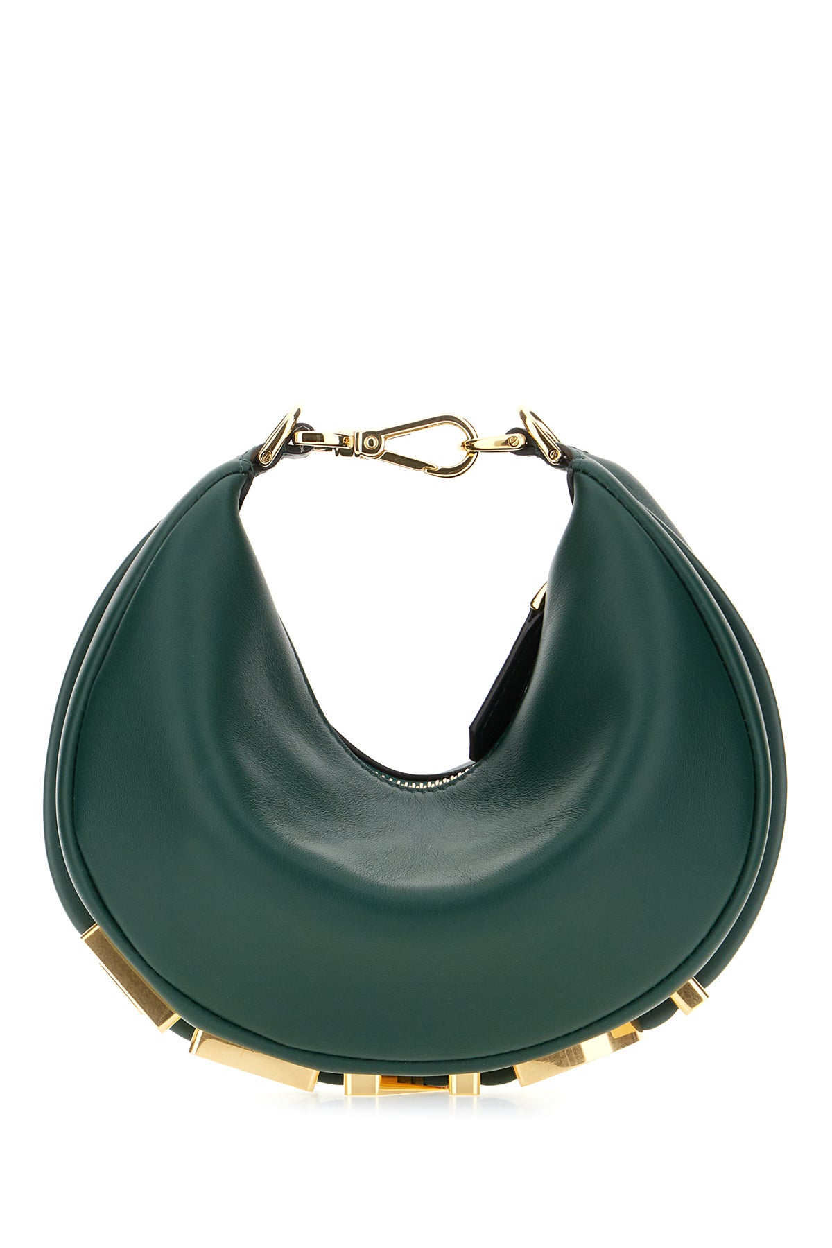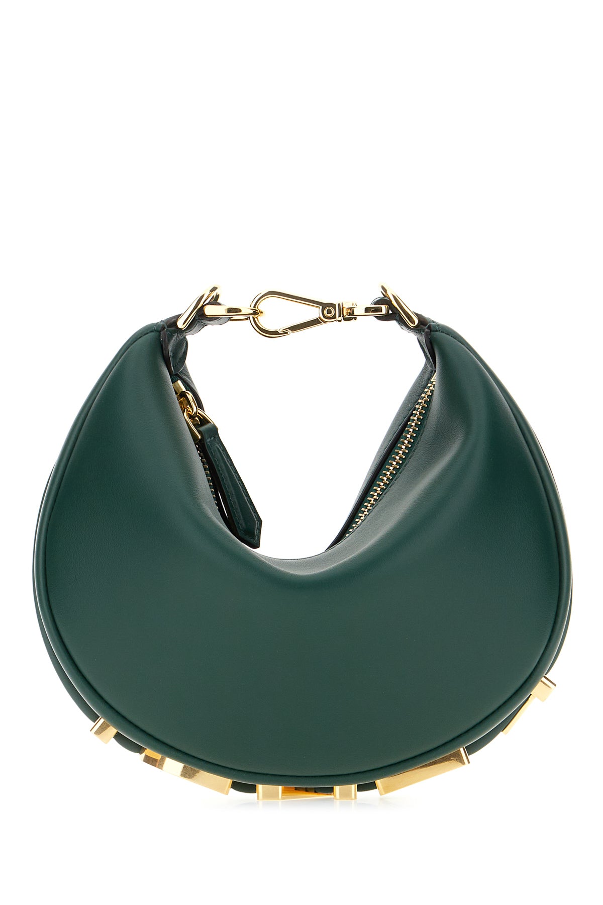 Borsa a mano realizzata in pelle liscia arricchita da logo in lettere metalliche alla base.