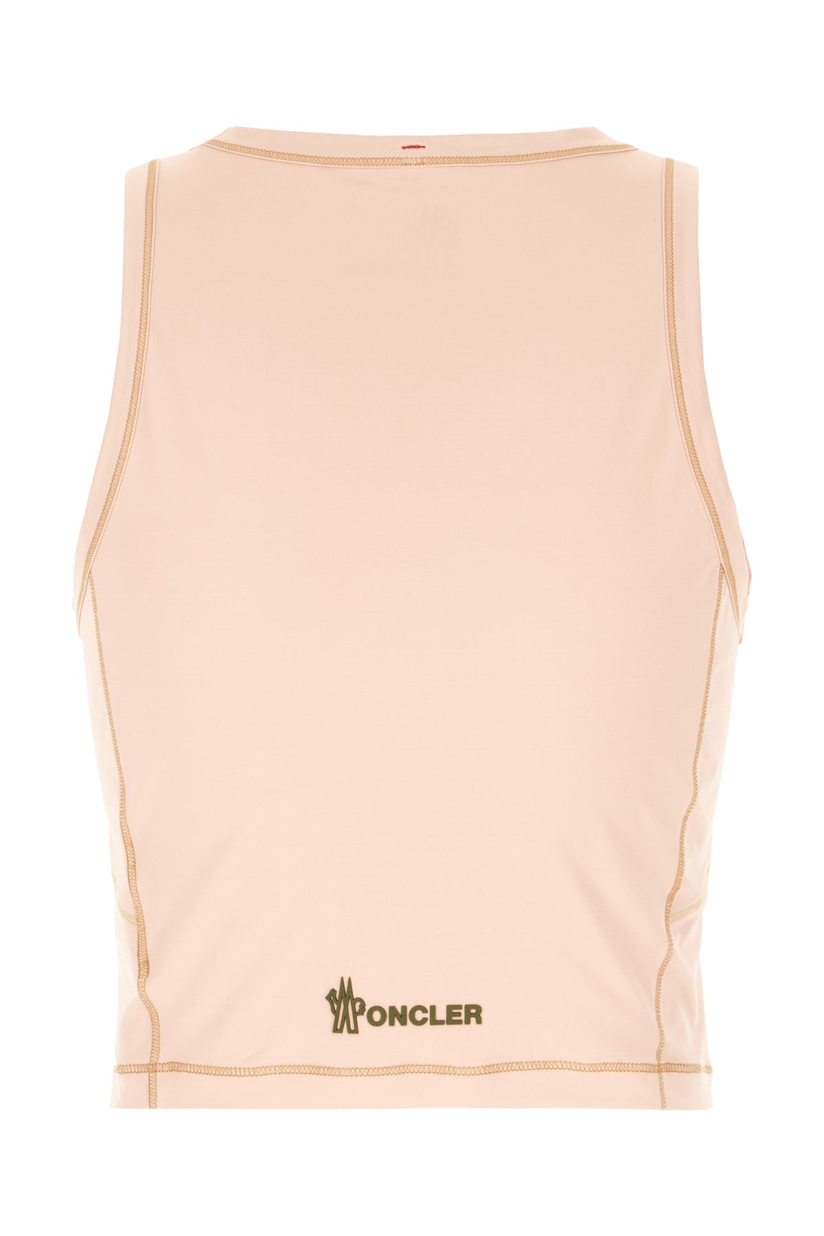 Top realizzato in nylon caratterizzato da cuciture a contrasto su tutta la superficie arricchito da applicazione logata a contrasto sul petto.
