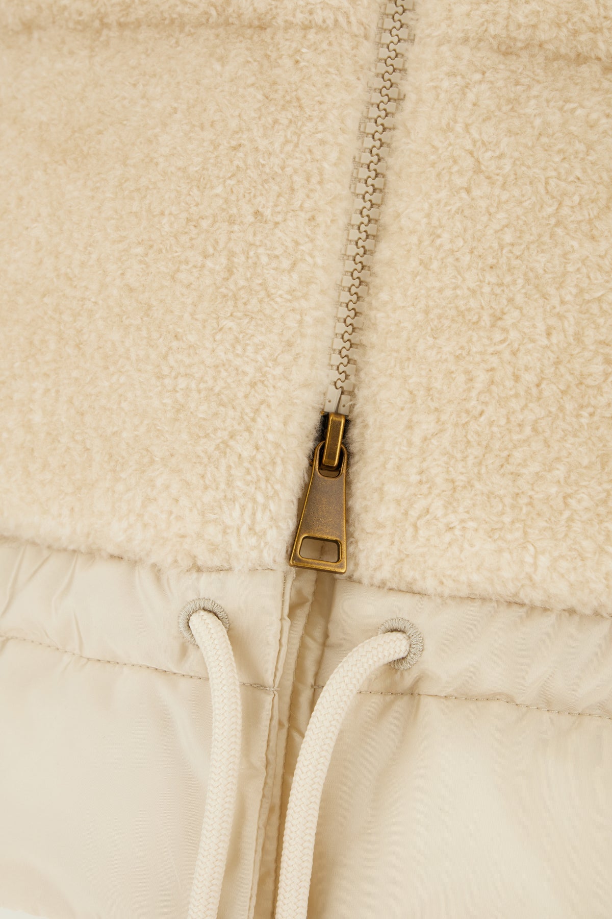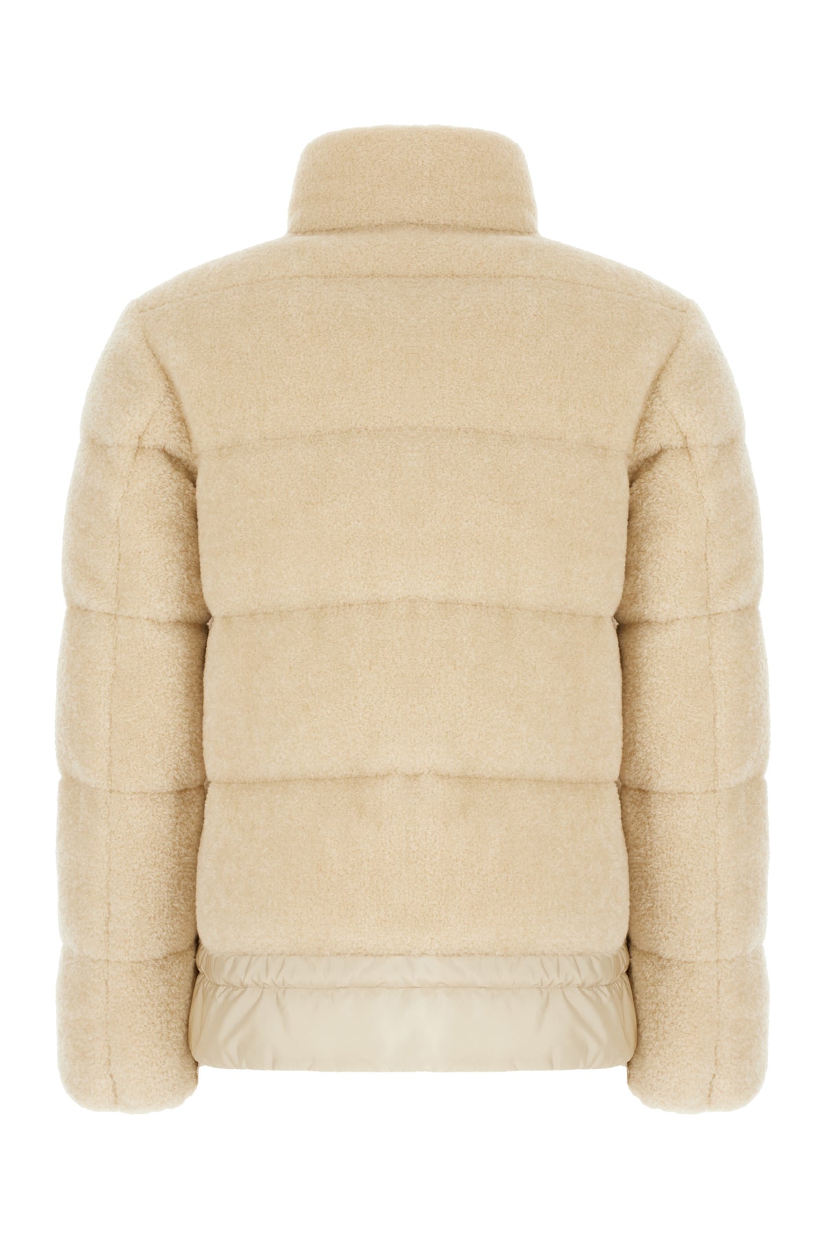 Piumino realizzato in misto acrilico ad effetto teddy arricchito da applicazione logata sulla manica.