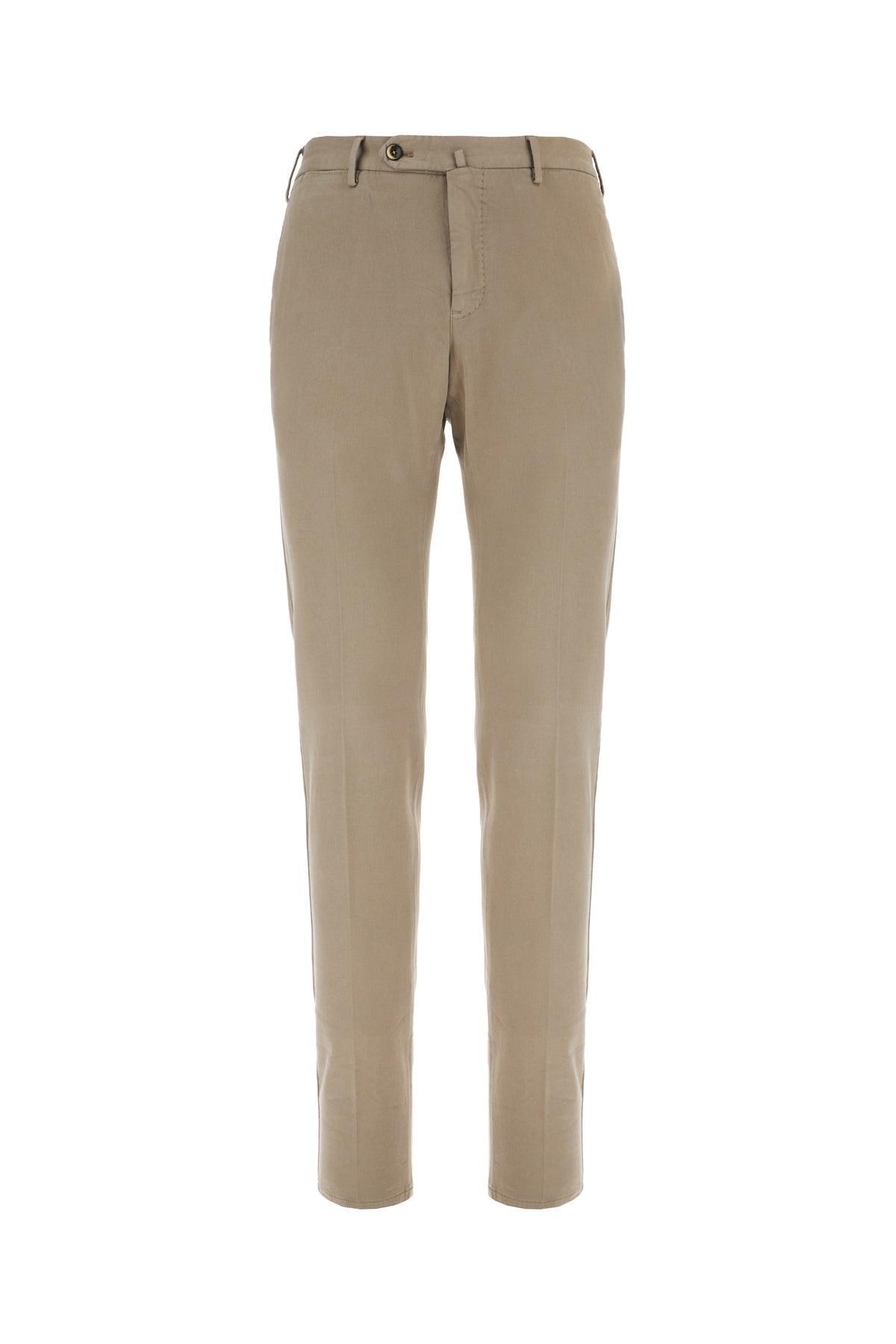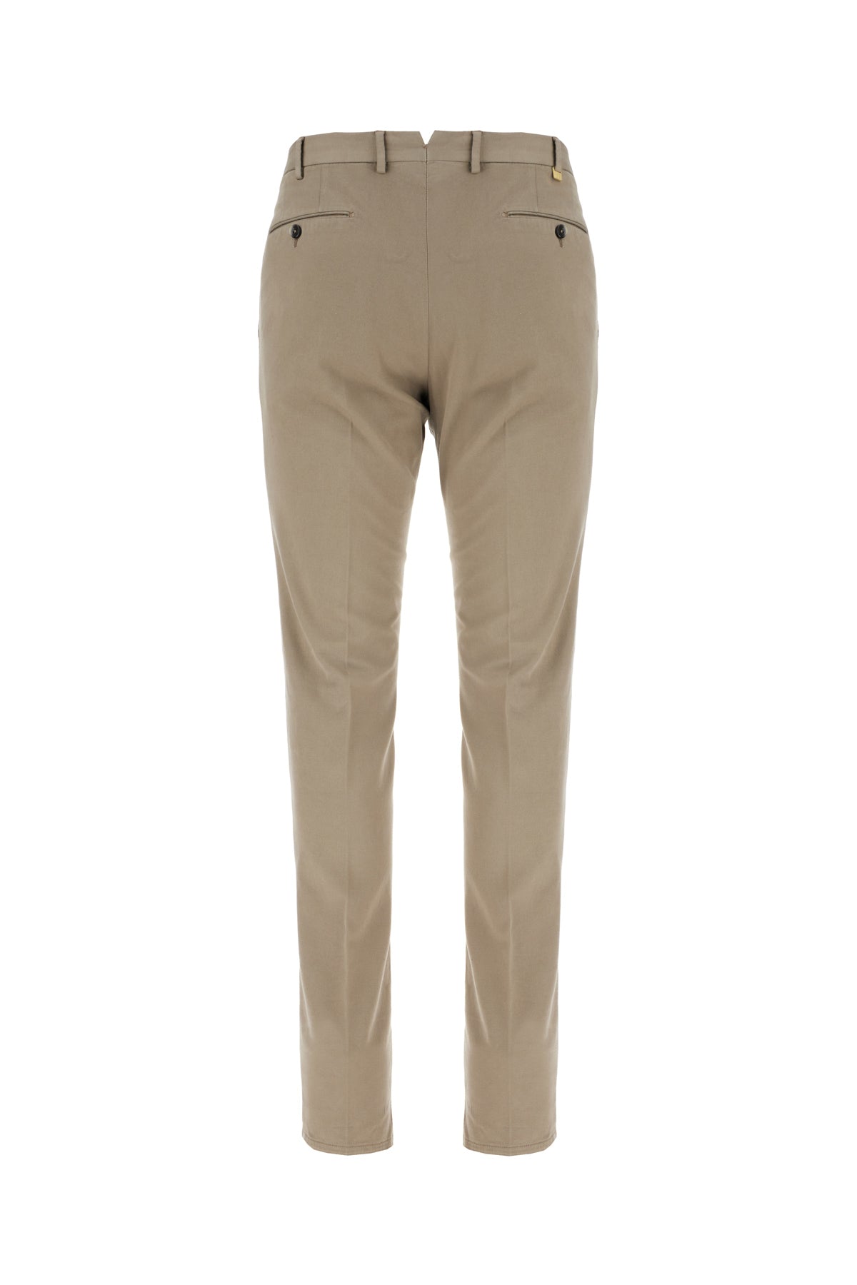Pantalone realizzato in misto cotone stretch arricchito da targhetta metallica logata sul retro.